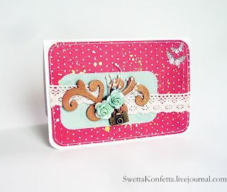 Такая необычная версия шебби))) Единственная открытка среди работ задания) Эх, подарить ее девушке-фотографу! Ну.. вот этой, например)